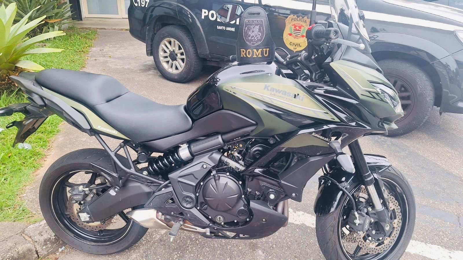 A Guarda Civil Municipal (GCM) de Santo André prendeu na tarde deste domingo (5), no Jardim do Estádio, um homem que trafegava no bairro com uma moto sem placa, modelo Kawasaki Versys.