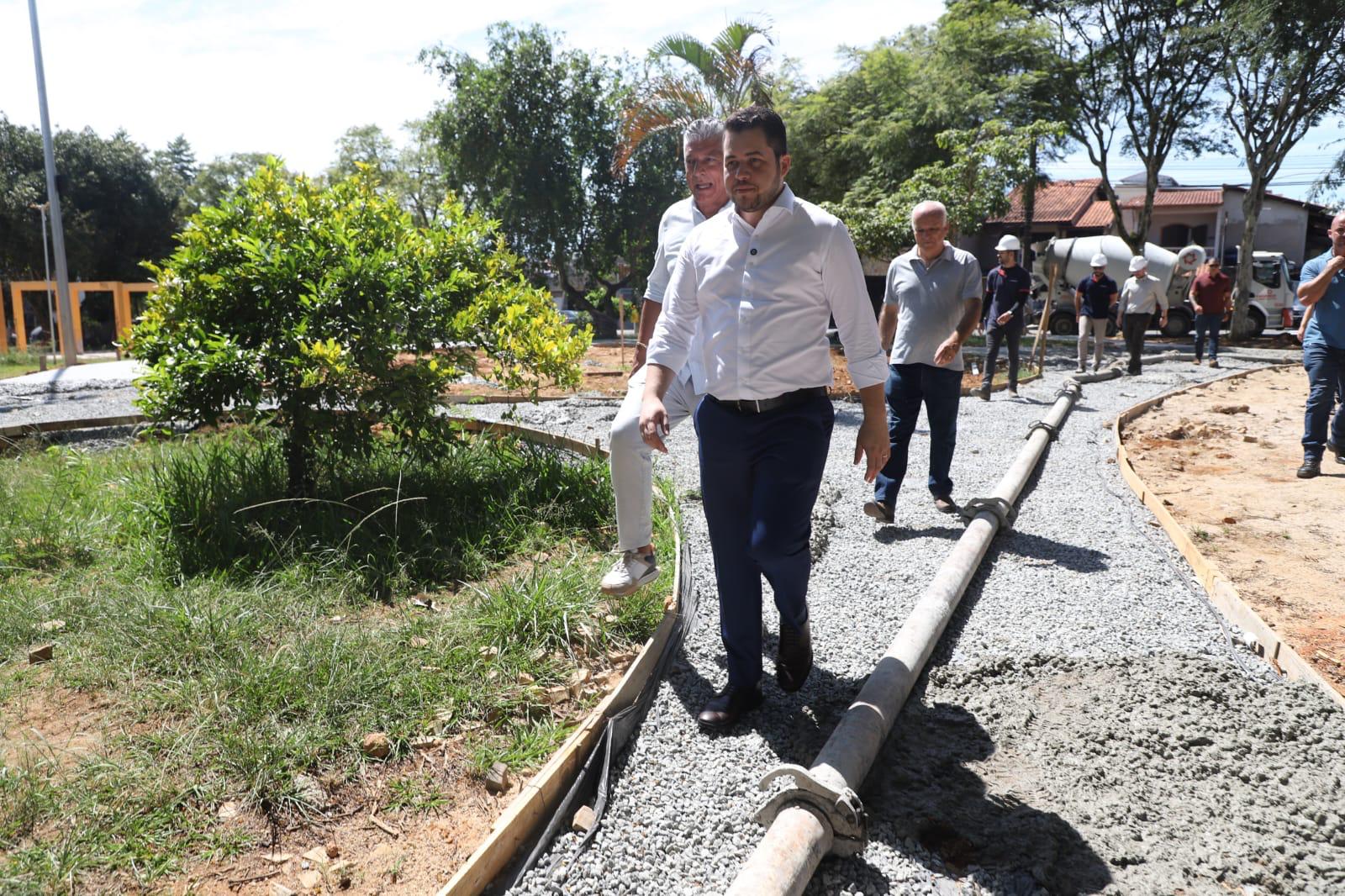 No Parque Marajoara, ele acompanhou os trabalhos na Praça Roque Orsate, que está sendo totalmente revitalizada e será entregue no mês de aniversário do município. O espaço contará com pista de caminhada, área pet, academia ao ar livre, playground, área de convivência e quadra esportiva, entre outras melhorias.