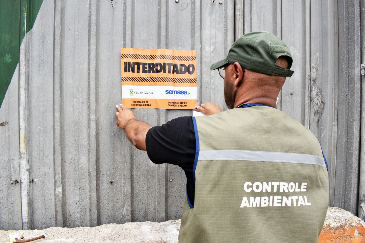 Um comércio de sucata localizado na Rua Dolores Duran, no Parque Novo Oratório, em Santo André, no limite com a zona leste de São Paulo, foi interditado nesta sexta-feira (19) por lançamento de esgoto doméstico no Córrego Guaixaya.