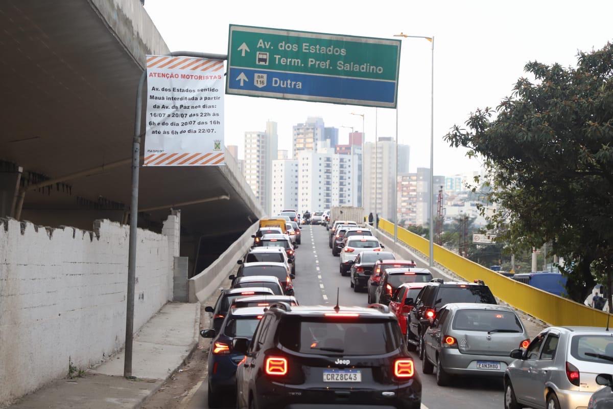 A Prefeitura de Santo André vai interditar, a partir da noite desta terça-feira (16), trecho da Avenida dos Estados, na altura do bairro Santa Teresinha, no sentido Mauá, para içamento de vigas dos novos viadutos que estão sendo construídos no local.