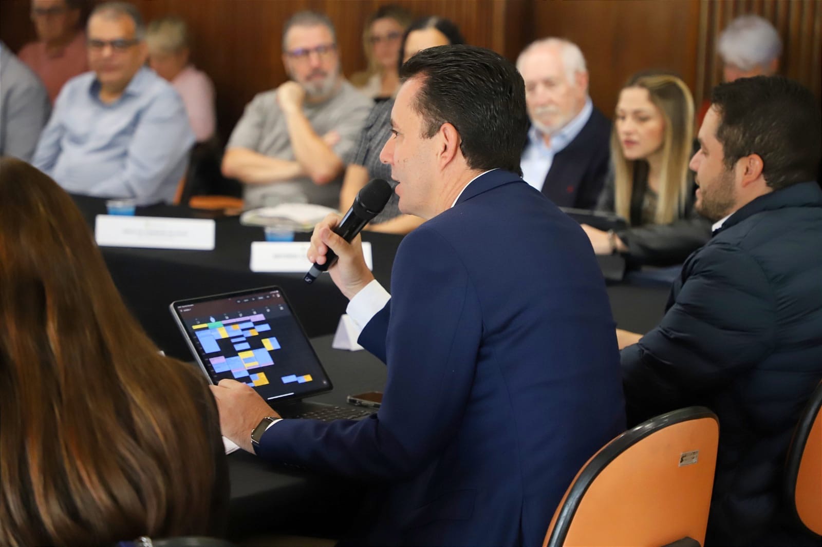 O prefeito Paulo Serra reuniu nesta terça-feira (15) todos os secretários municipais para apresentar o Plano de Metas para 2025. Entre os convidados estavam também Gilvan, que foi eleito prefeito e assume o comando do Paço andreense a partir de janeiro, e Silvana Medeiros, eleita vice-prefeita. A reunião já faz parte do plano de transição do governo.