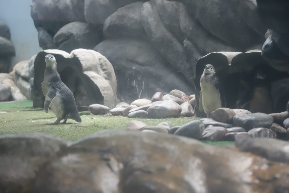 O local tem cenografia que simula o ambiente natural da Patagônia, local de origem dos pinguins.