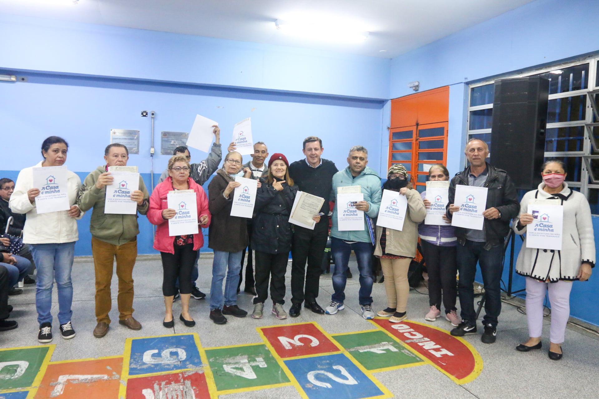 O prefeito de São Bernardo, Orlando Morando, entregou mais 56 escrituras às famílias do Jardim Alvorada, na região do Grande Alvarenga. A concretização do sonho de ter em mãos o documento que comprova a titularidade dos imóveis ocorreu na tarde desta quarta-feira (28/9), em mais uma ação de expansão do Programa A Casa é Minha.