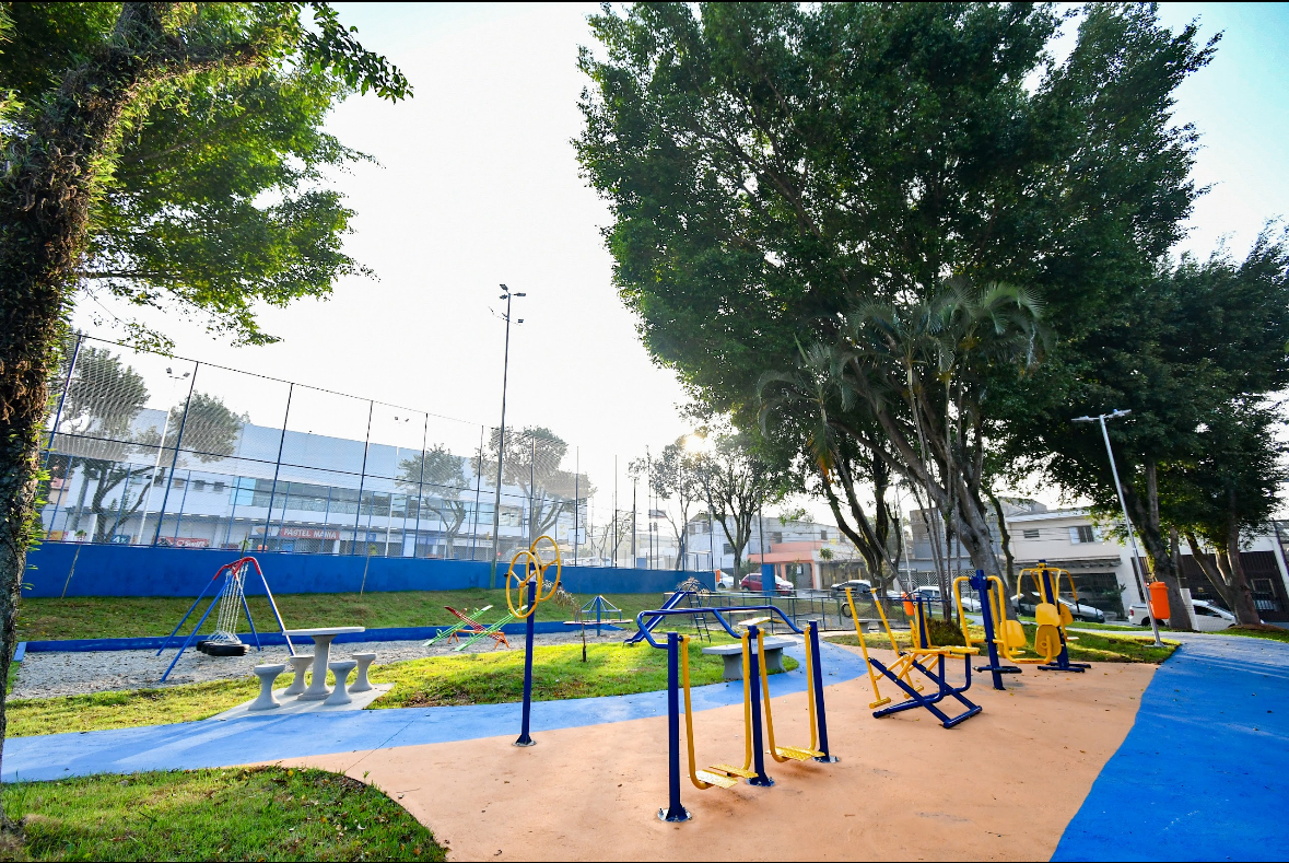 Os serviços de paisagismo, reforma da quadra com fechamento em alambrado e cobertura de rede, implantação de academia ao ar livre, área de convívio, pista de caminhada, além de nova iluminação e gradil no entorno atingiram 90% de execução. Os 2.000 metros quadrados de área receberam investimento de R$ 950 mil reais.