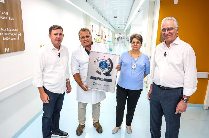 Ao lado do secretário de Saúde, Dr. Geraldo Reple, o prefeito Orlando Morando entregou o certificado ao diretor técnico do HU, Dr. Carlos Fadel, e estendeu os cumprimentos aos quase 2.000 colaboradores do equipamento. “Essa unidade foi a principal referência de São Bernardo durante a pandemia e permanece em nossa rede de saúde como um importante legado deste período, ofertando suporte de urgência e emergência à nossa população. Para ter uma acreditação internacional, o HU apresentou excelência em inúmeros processos e esse título reforça todo nosso comprometimento em oferecer saúde de qualidade às pessoas”, destacou o chefe do Executivo.
