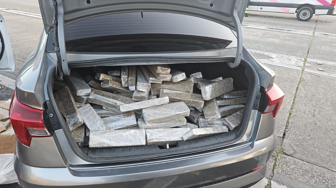 Após buscas no veículo, os agentes encontraram no porta-malas três caixas de papelão lacradas cheias de entorpecentes. No total, foram localizados 187 tijolos de maconha, que pesaram 172 quilos. O homem foi preso em flagrante e seu automóvel e celular, bem como as drogas, apreendidos.