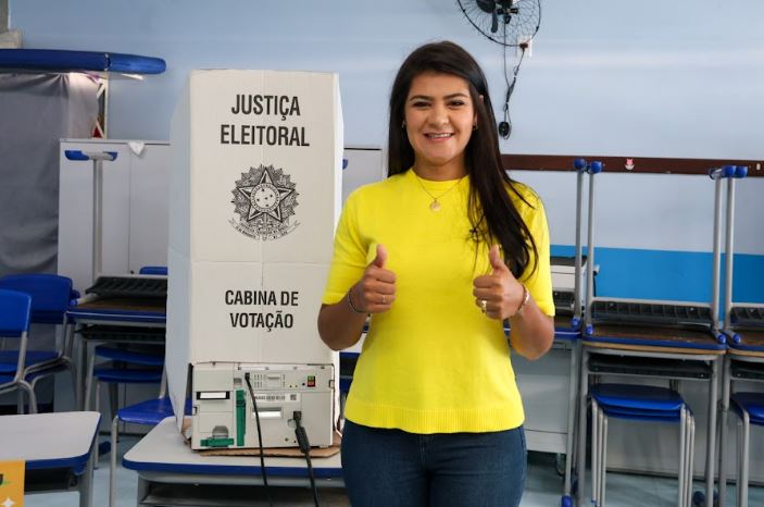 Candidata à Prefeitura de São Bernardo pelo União Brasil, Flávia Morando registrou seu voto na manhã deste domingo (6), por volta das 11h, na EMEB Isidoro Battistin, localizada no Bairro Batistini, onde nasceu.