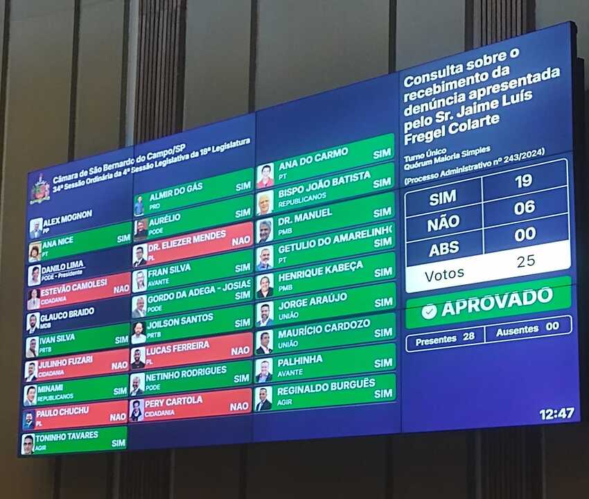 Votaram “SIM” pela abertura do processo os vereadores Ana Nice, Almir do Gás, Aurélio, Dr. Manuel, Getulio do Amarelinho, Fran Silva, Gordo da Adega, Josias, Joilson Santos, Jorge Araújo, Henrique Kabeça, Maurício Cardozo, Palhinha, Reginaldo Burguês, Ivan Silva, Minami e Toninho Tavares.