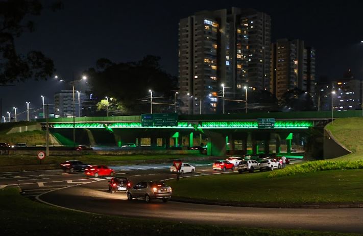 A ação, cujo investimento foi de R$ 1,3 milhão, será refletida ao longo de 180 metros de extensão do viaduto, em ambos os lados, seguindo a mesma linha adotada no Viaduto Tereza Delta, que desde março recebe nova iluminação, substituída mês a mês. Essa iniciativa tem o objetivo de complementar a visibilidade de atividades do município, principalmente àquelas ligadas à área da saúde, para marcar o período de reflexão sobre pautas sensíveis à sociedade.