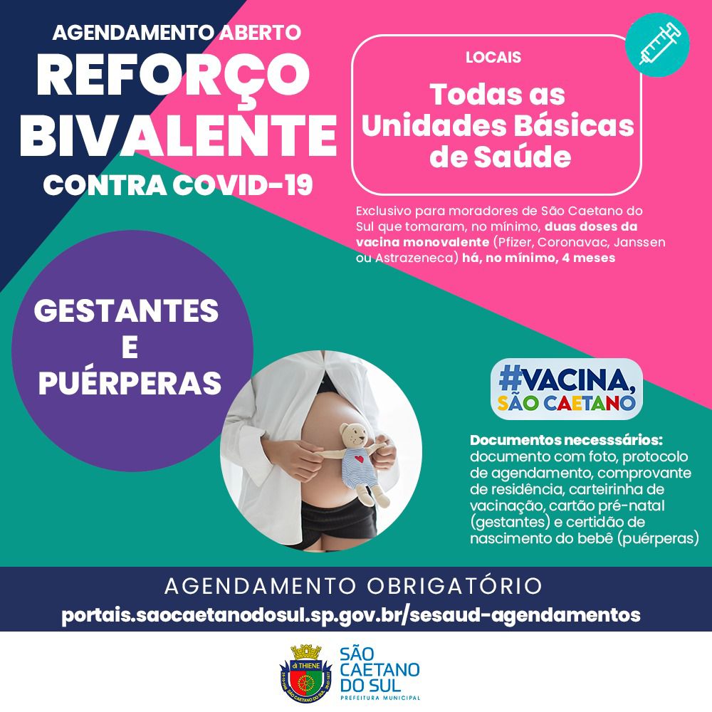 A Prefeitura de São Caetano do Sul abriu nesta quinta-feira (16) agendamento com reforço bivalente para gestantes e puérperas.
