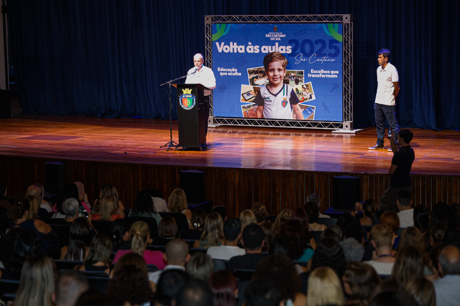 O Teatro Paulo Machado de Carvalho foi palco do evento de acolhimento dos professores e de orientações para o início do ano letivo em São Caetano do Sul, marcado para segunda-feira.