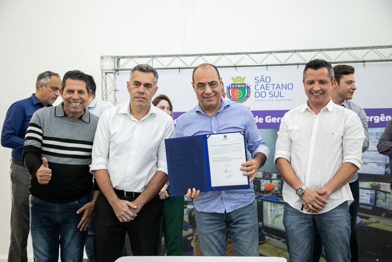 O prefeito de São Caetano, José Auricchio Júnior, assinou na tarde desta sexta-feira (7) a Ordem de Serviço para a ampliação do CGE (Centro de Gerenciamento de Emergências). As obras, na Rua Conselheiro Lafaiete, no Bairro Santa Paula, deverão ser iniciadas segunda-feira (10), e têm prazo de entrega de 90 dias. Além do CGE ampliado, o local de 1.435m² alocará também a Seseg (Secretaria de Segurança).