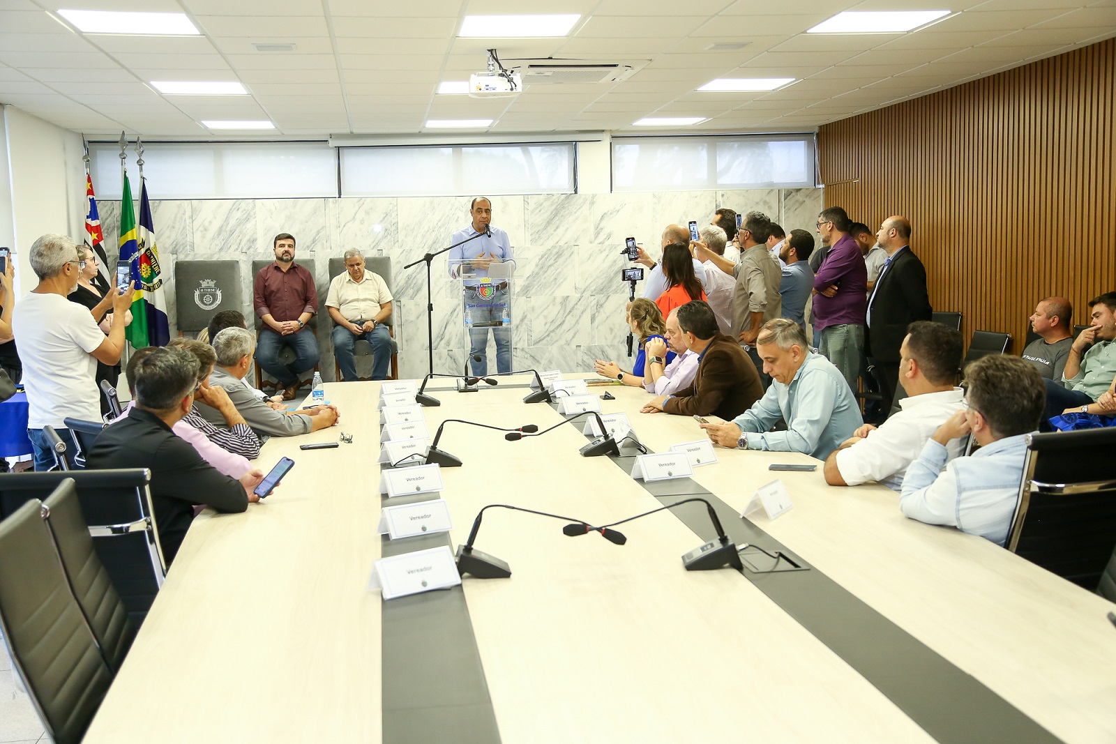 Nesta terça-feira (31), em solenidade no Palácio da Cerâmica, sede da Prefeitura de São Caetano do Sul, o prefeito José Auricchio Júnior entregou à Câmara Municipal dois projetos de lei que instituem programas de assistência social a alunos da rede municipal de ensino: Renda Educação e Renda Educação Especial.