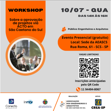 A AEASCS (Associação dos Engenheiros e Arquitetos de São Caetano do Sul) realizará um workshop gratuito sobre a análise e aprovação digital de projetos via ACTO, um sistema eletrônico que agilizará a análise e aprovação de projetos de construção no município.