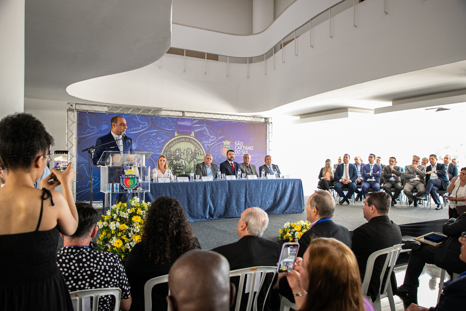 O prefeito de São Caetano do Sul, José Auricchio Júnior, condecorou 40 moradores com a Medalha Di Thiene. O evento foi realizado neste domingo (6), no Edifício Prefeito Oswaldo Samuel Massei, na Avenida Goiás.