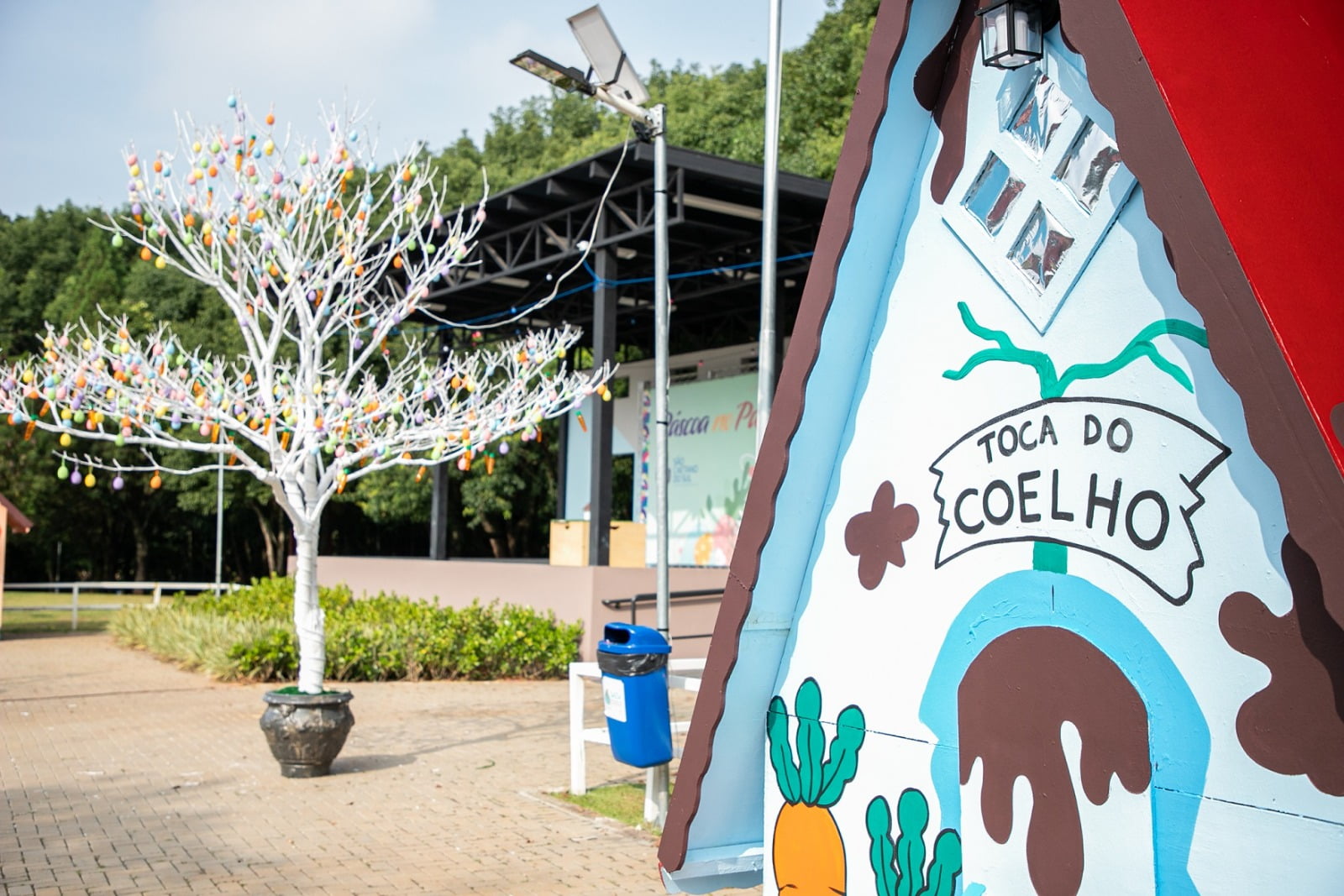 Quem passeou no Espaço Verde Chico Mendes, em dezembro do ano passado, certamente ainda se lembra da Vila de Natal, que encantou crianças e adultos com as casinhas decoradas com motivos natalinos, ao lado de um corredor iluminado. Agora, estas mesmas estruturas foram ornamentadas com motivos alusivos à Páscoa, quase sem custos para a Prefeitura, graças à parceria entre Sesurb (Secretaria de Serviços Urbanos), Secult (Secretaria de Cultura) e Setor de Eventos da Secretaria de Governo.