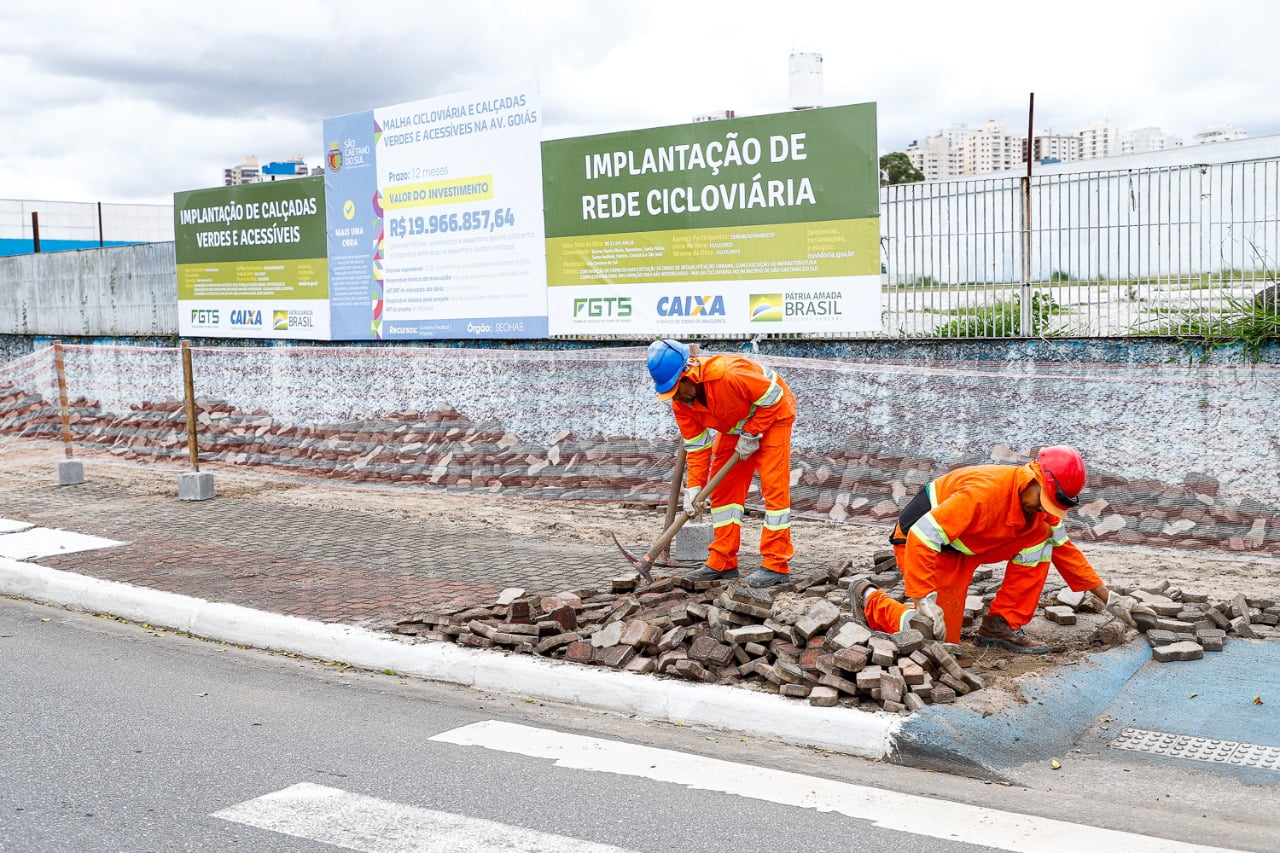 Além das obras das Calçadas Verdes e Acessíveis, a Prefeitura está implantando mais 12 km de ciclovias na cidade, inclusive passando pela Avenida Goiás.