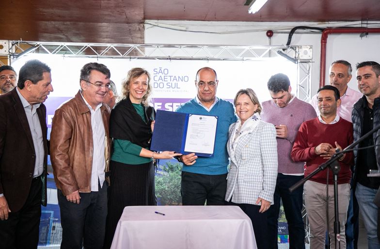 Nesta quarta-feira (5), o prefeito de São Caetano, José Auricchio Júnior, assinou a Ordem de Serviço para o início das obras de requalificação da EME (Escola Municipal de Ensino) Professora Alcina Dantas Feijão, no Bairro Mauá.