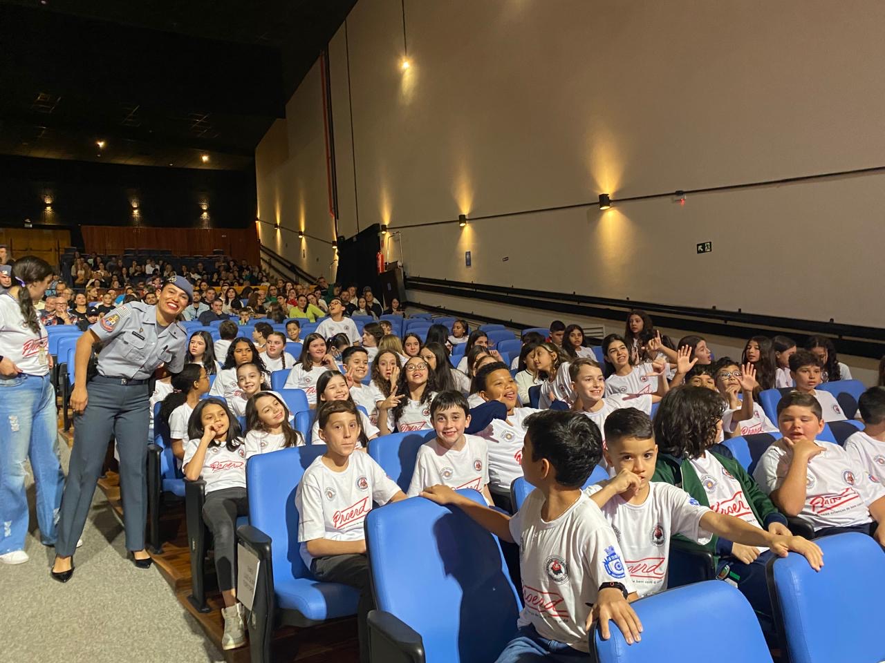 No total, participaram da formatura 819 alunos dos 5º anos das escolas municipais. O programa, com palestras e atividades direcionadas à prevenção às drogas e às práticas violentas dentro e fora do ambiente escolar, foi conduzido de forma voluntária pela PM Juliana Ferreira Pinto e pelo cabo PM Noel Antônio de Aguiar Filho.