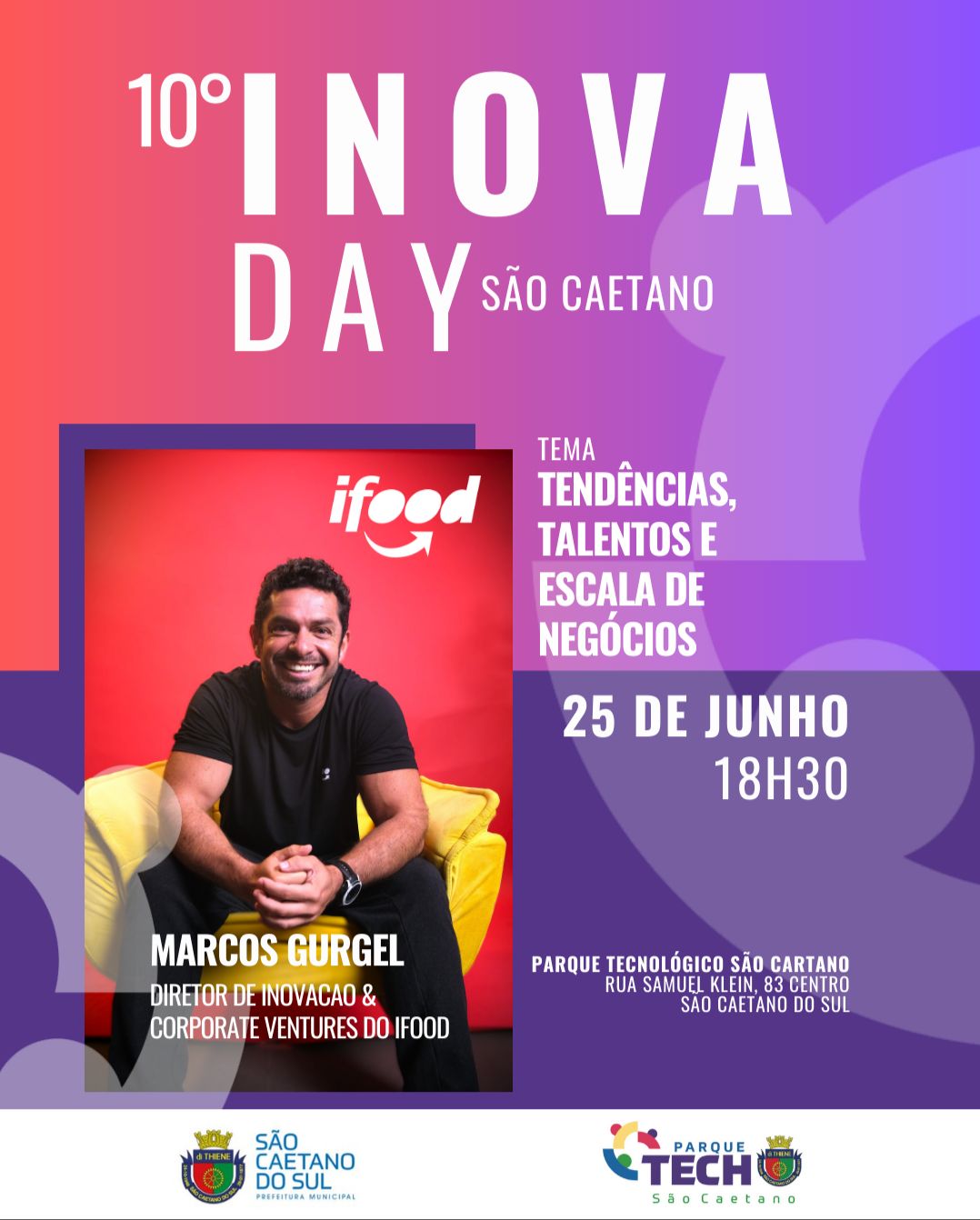 A Prefeitura de São Caetano, por meio da Sedeti (Secretaria de Desenvolvimento Econômico, Trabalho, Turismo, Tecnologia e Inovação), realizará a 10ª edição do InovaDay, com a presença de Marcos Gurgel, Diretor de Inovação & Corporate Ventures do iFood Brasil, a maior foodtech da América Latina.