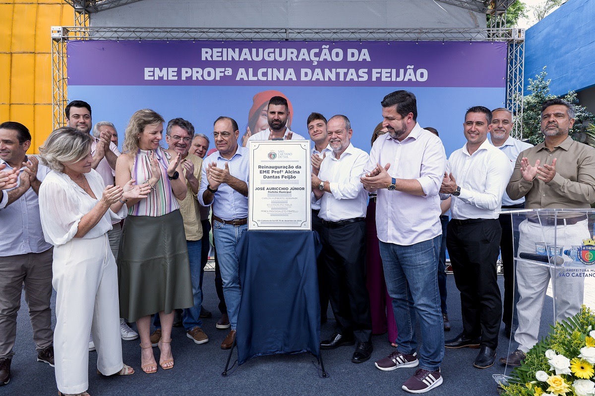 Nesta quinta-feira (19), o prefeito de São Caetano, José Auricchio Júnior, fez a entrega de mais uma unidade escolar totalmente revitalizada: a EME (Escola Municipal de Ensino) Professora Alcina Dantas Feijão, no Bairro Nova Gerty.
