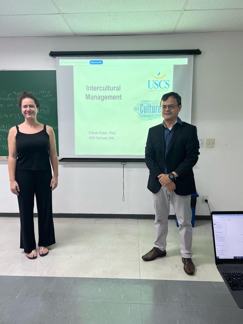 Sua vinda foi viabilizada pelo responsável pela área, Prof. Dr. Aleksandar Jovanovic, Chefe do Escritório de Relações Internacionais da USCS; e pelo Prof. Dr. Eduardo Oliva, Diretor e Gestor do Programa de Pós-Graduação em Administração – Mestrado e Doutorado, da USCS.