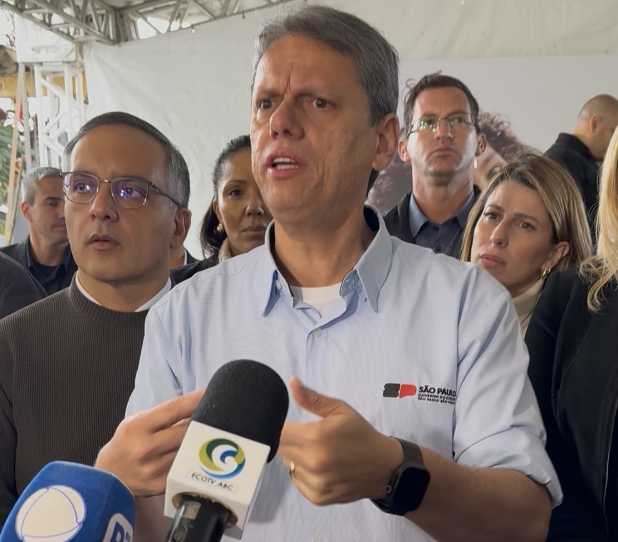 O prefeito de São Bernardo, Marcelo Lima, aproveitou agenda com Tarcísio na cidade – modernização da Estação de Tratamento de Água (ETA) para mais 400 litros de água tratada por segundo- para encaminhar pedidos da Saúde.