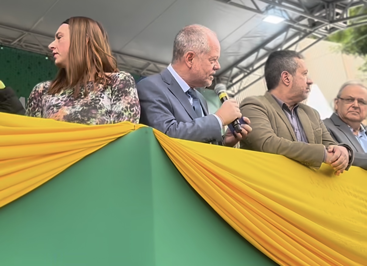 Tite esteve no palco principal com a primeira-dama, Renata Galati, com o deputado estadual Thiago Auricchio e vereadores.