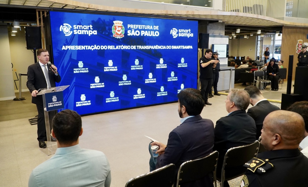 O prefeito de São Paulo, Ricardo Nunes, e o secretário de Segurança Urbana, Orlando Morando, apresentaram à imprensa, nesta quarta (18), relatório de transparência do Smart Sampa – maior e mais completo sistema de monitoramento inteligente da América Latina.