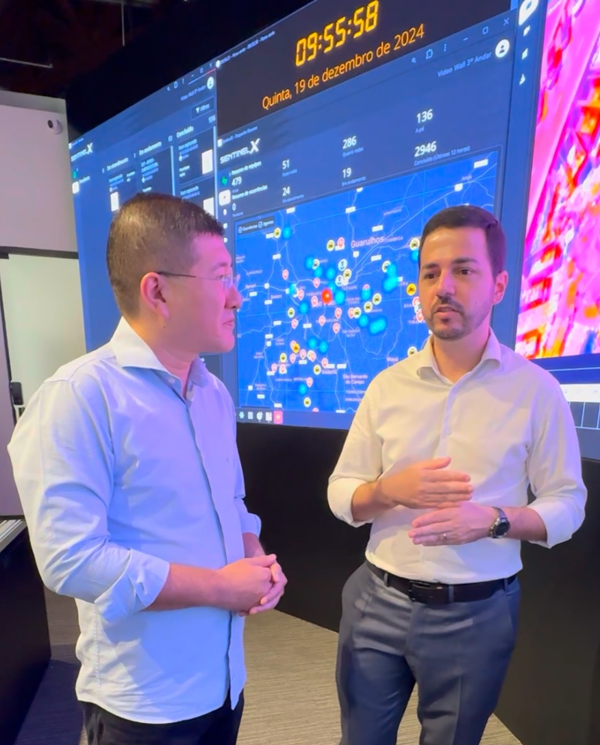 A tecnologia de biometria facial permite a identificação de pessoas em tempo real, auxiliando na prevenção e resolução de crimes. Além disso, a integração com outros serviços públicos, como os bombeiros, por exemplo, amplia sua capacidade de resposta a diferentes tipos de ocorrências. O sistema opera com um centro de monitoramento centralizado, permitindo a observação e análise de dados, com capacidade de resposta rápida a emergências”, disse Taka em publicação nas redes sociais.