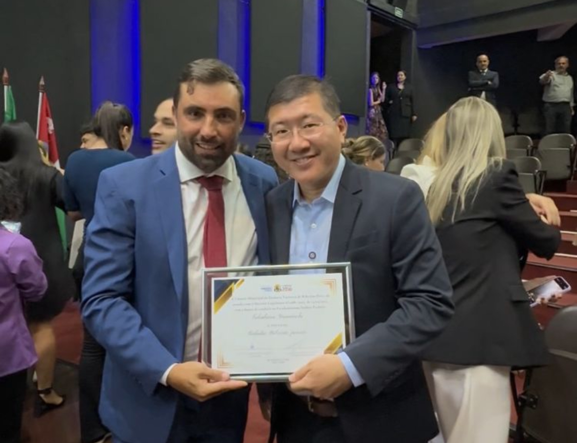 Na noite desta sexta-feira (28), Taka Yamauchi, prefeito de Diadema, foi homenageado com o título de Cidadão Ribeirão-Pirense em uma cerimônia solene que reuniu diversas autoridades.