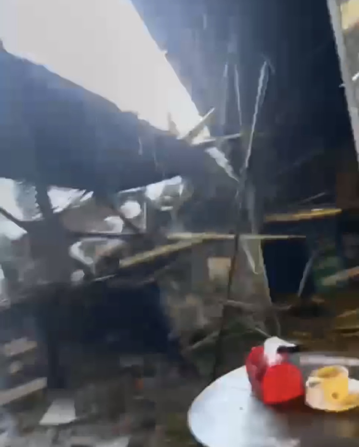 Devido às chuvas fortes e queda de granizo houve o desabamento do telhado do Supermercado Barbosa na região Central, situado à Rua Campos Sales, 571.
