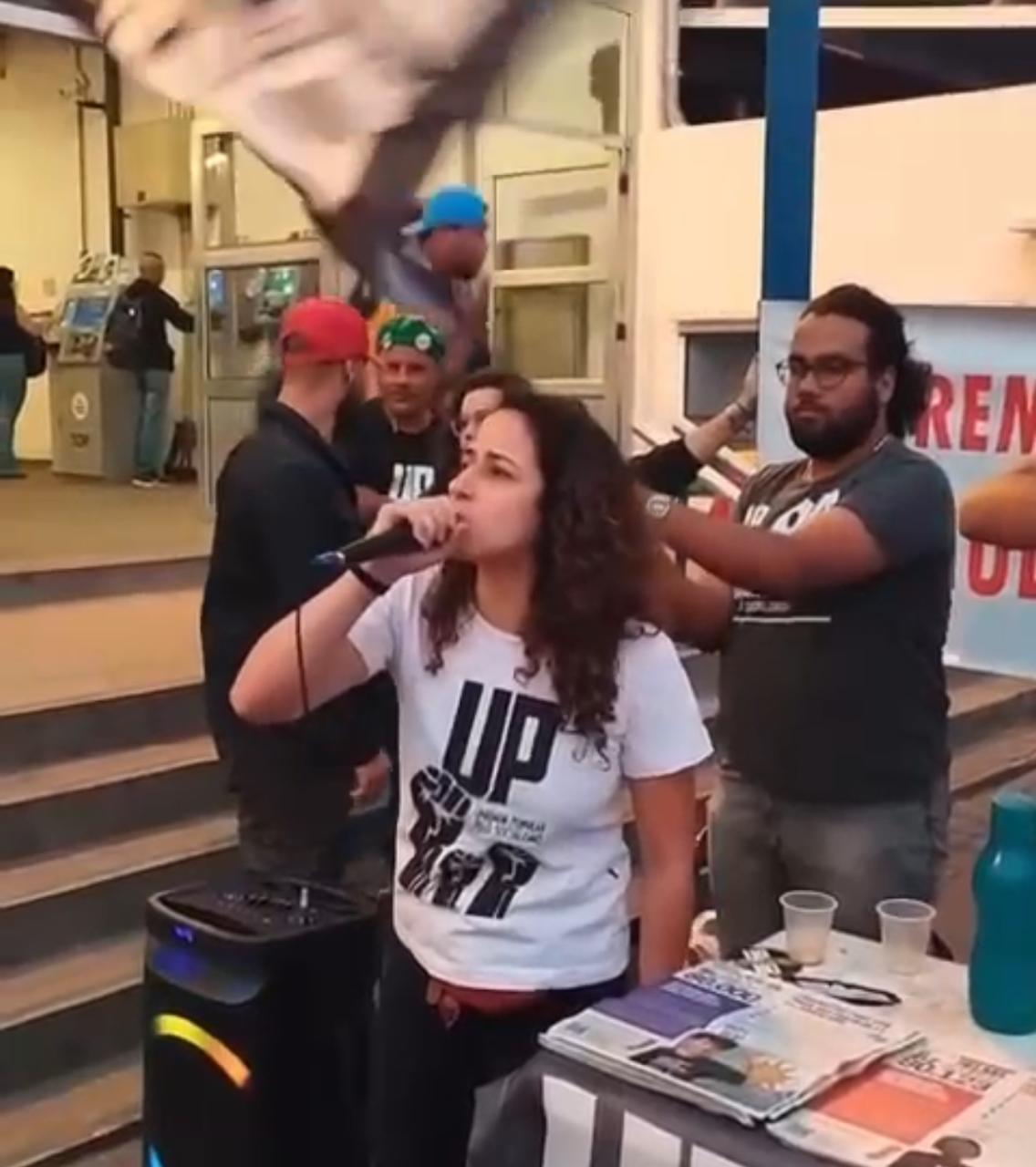 A candidata esteve nesta quarta-feira (11) na estação de trem de Mauá para discursar sobre suas propostas de governo.