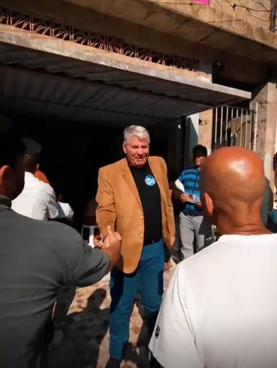 Durante a tarde, ele caminhou pelo bairro Jardim Santista e encerrou o dia em frente ao shopping da cidade.