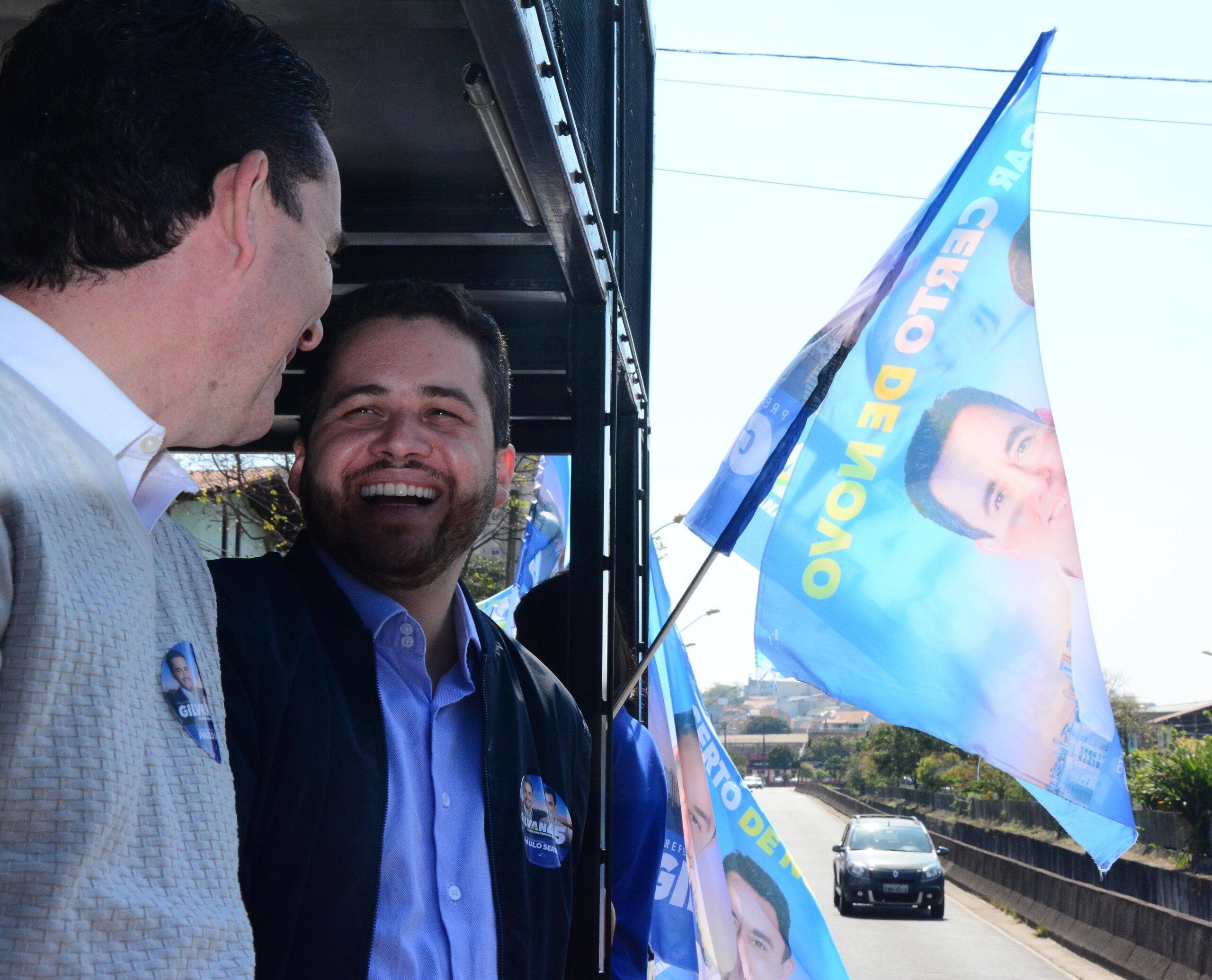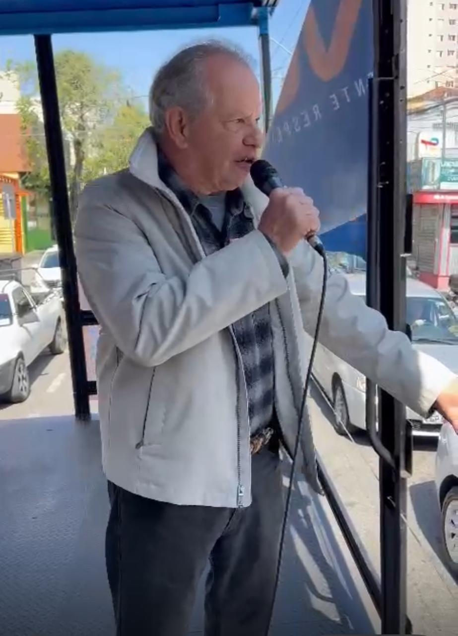 Nesta quarta-feira (28), o candidato percorreu as ruas da cidade em um caminhão de som para dialogar com a população.