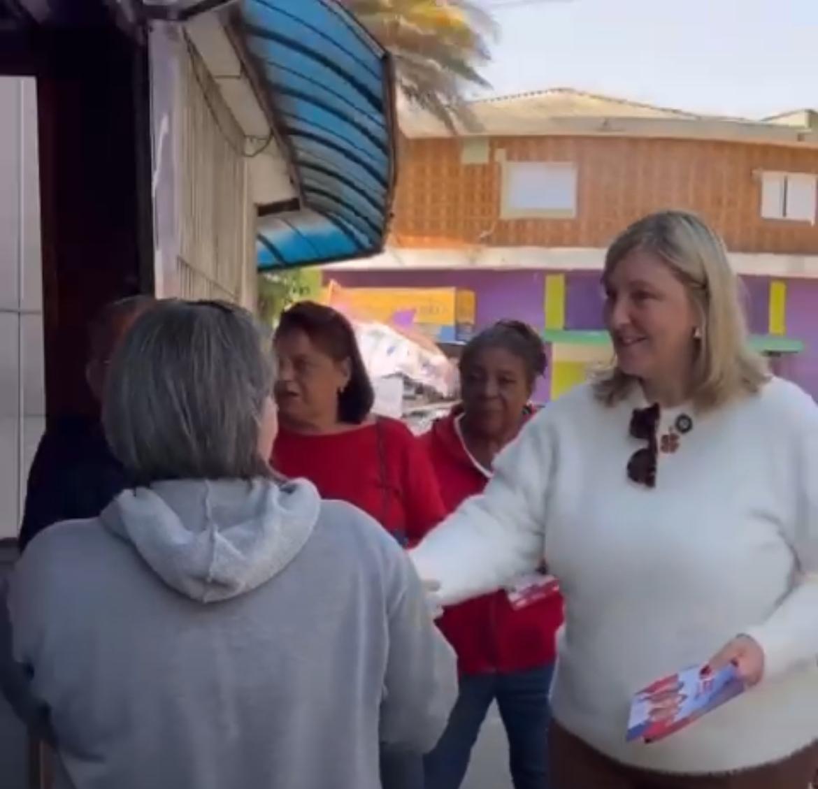 A candidata esteve hoje no Jd. Alzira Franco e na Escola Elaine Cena Chaves para dialogar com a população e distribuir folhetos de campanha.