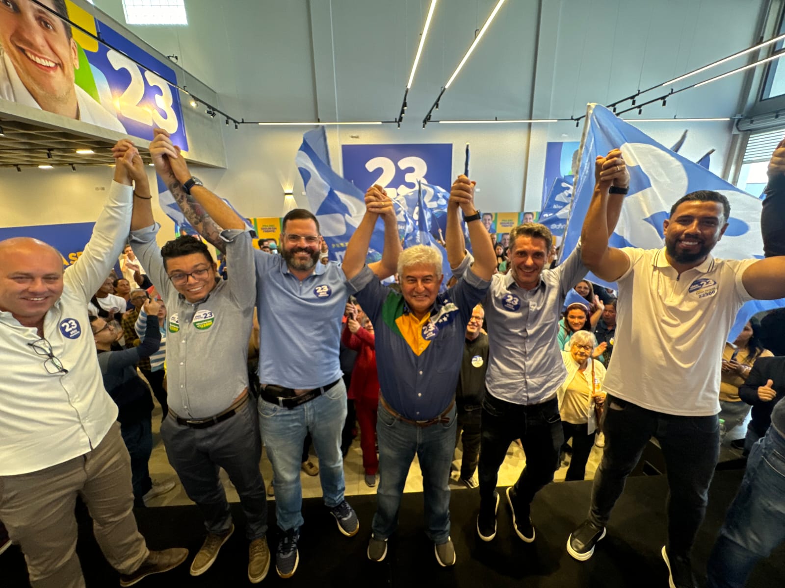 O candidato recebeu o apoio do senador Marcos Pontes (PL), que esteve no município e conversou com moradores e apoiadores durante encontro no comitê de Alex, na região central. Estavam na atividade o candidato a vice-prefeito Paulo Eduardo (PL), e os vereadores Lucas Ferreira (PL), Eliezer Mendes (PL), Julinho Fuzari (Cidadania), Pery Cartola (Cidadania) e Alex Mognon (Progressistas).