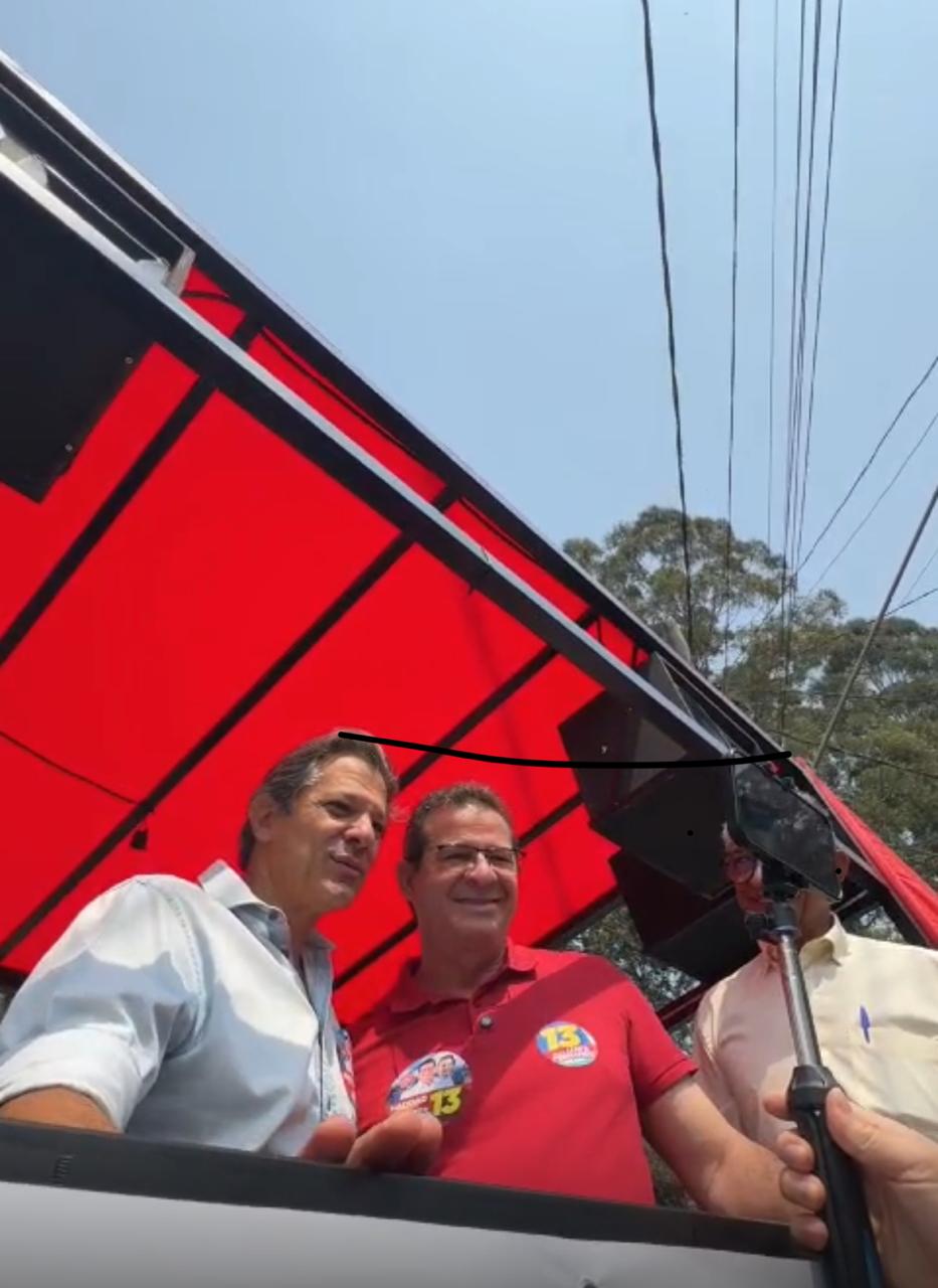O candidato esteve neste sábado na Rádio Paraty para conceder entrevista sobre seus projetos para a cidade. Na sequência, ao lado dos ministros Fernando Haddad e Luiz Marinho, promoveu uma carreata, saindo do Terminal Ferrazópolis e chegando à Rua do Oleoduto, na Vila São Pedro.