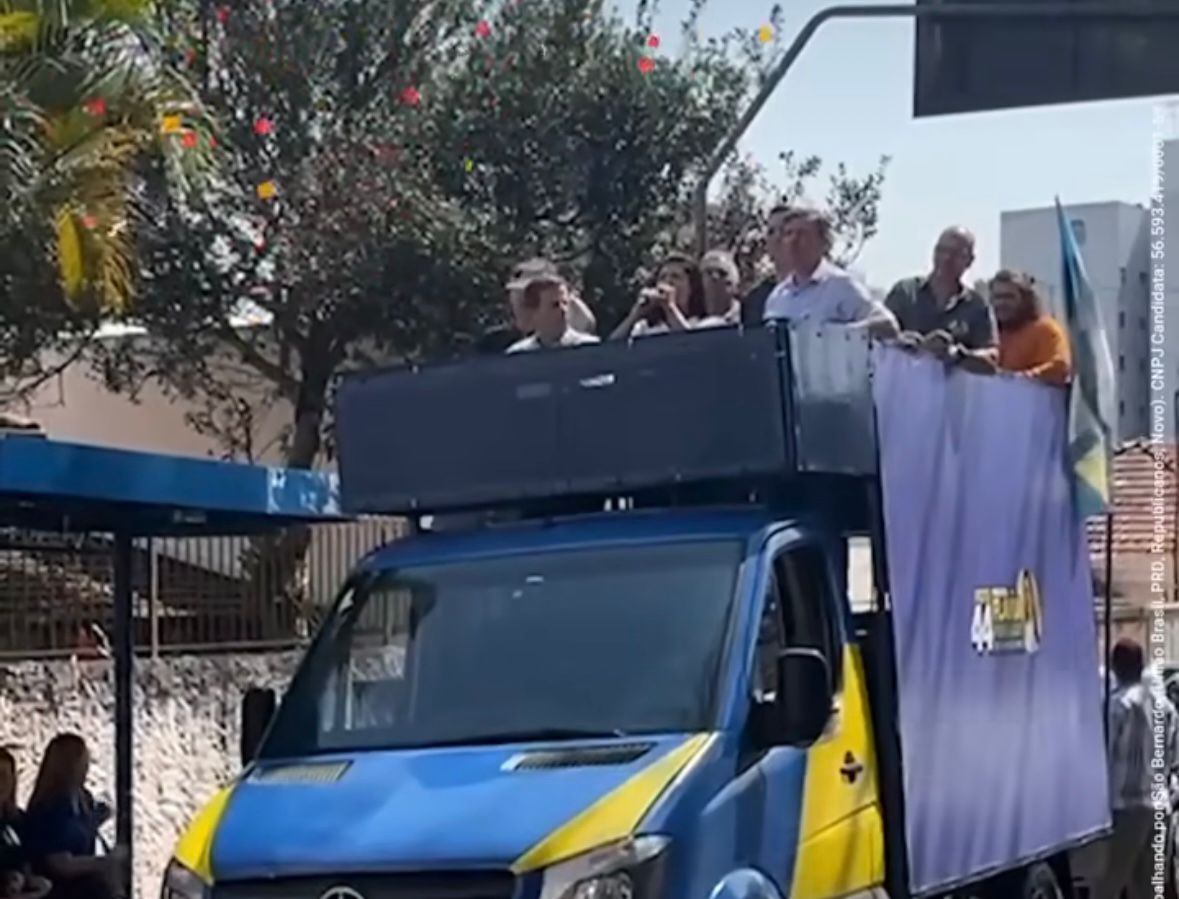A candidata a prefeita de São Bernardo, Flávia Morando (União), percorreu o bairro Nova Petrópolis no caminhão de som ao lado do prefeito Orlando Morando e de apoiadores.