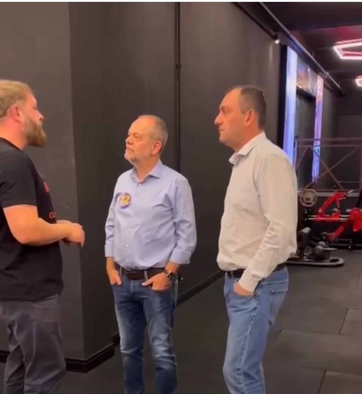 O candidato visitou a Academia Ironberg juntamente com seu amigo Beto.