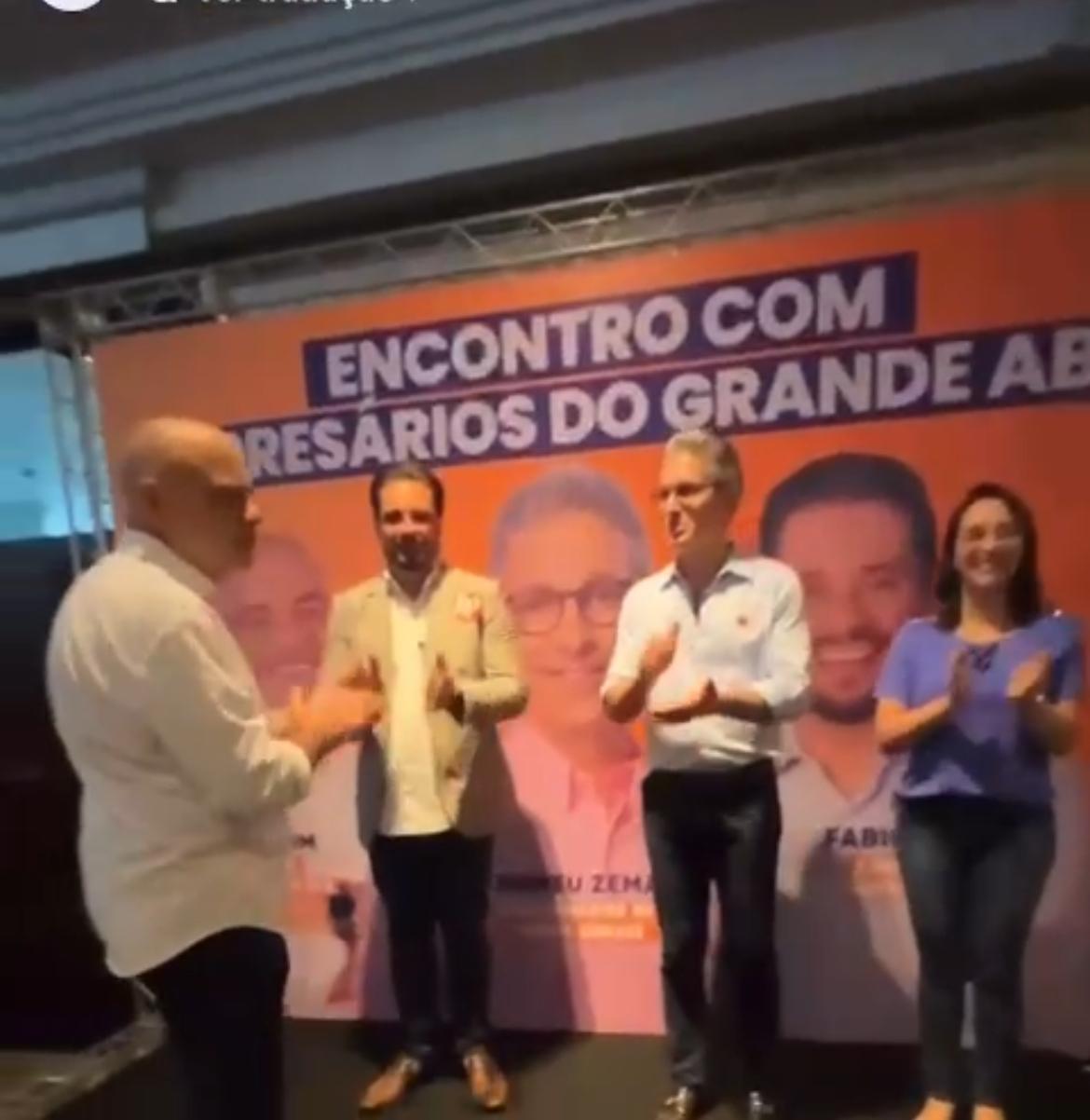 O candidato e seu vice, Mário Bohm, participaram nesta terça (10), do Encontro de Empresários do ABC, em São Caetano. Neste encontro, também estava presente o governador de Minas Gerais, Romeu Zema (Novo).