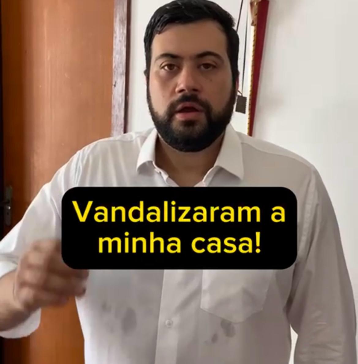 No vídeo, o parlamentar cita que tomará as providências e, inclusive, compartilha imagens do circuito de segurança que mostram dois homens, um deles jogando um objeto em direção ao residencial dele.
